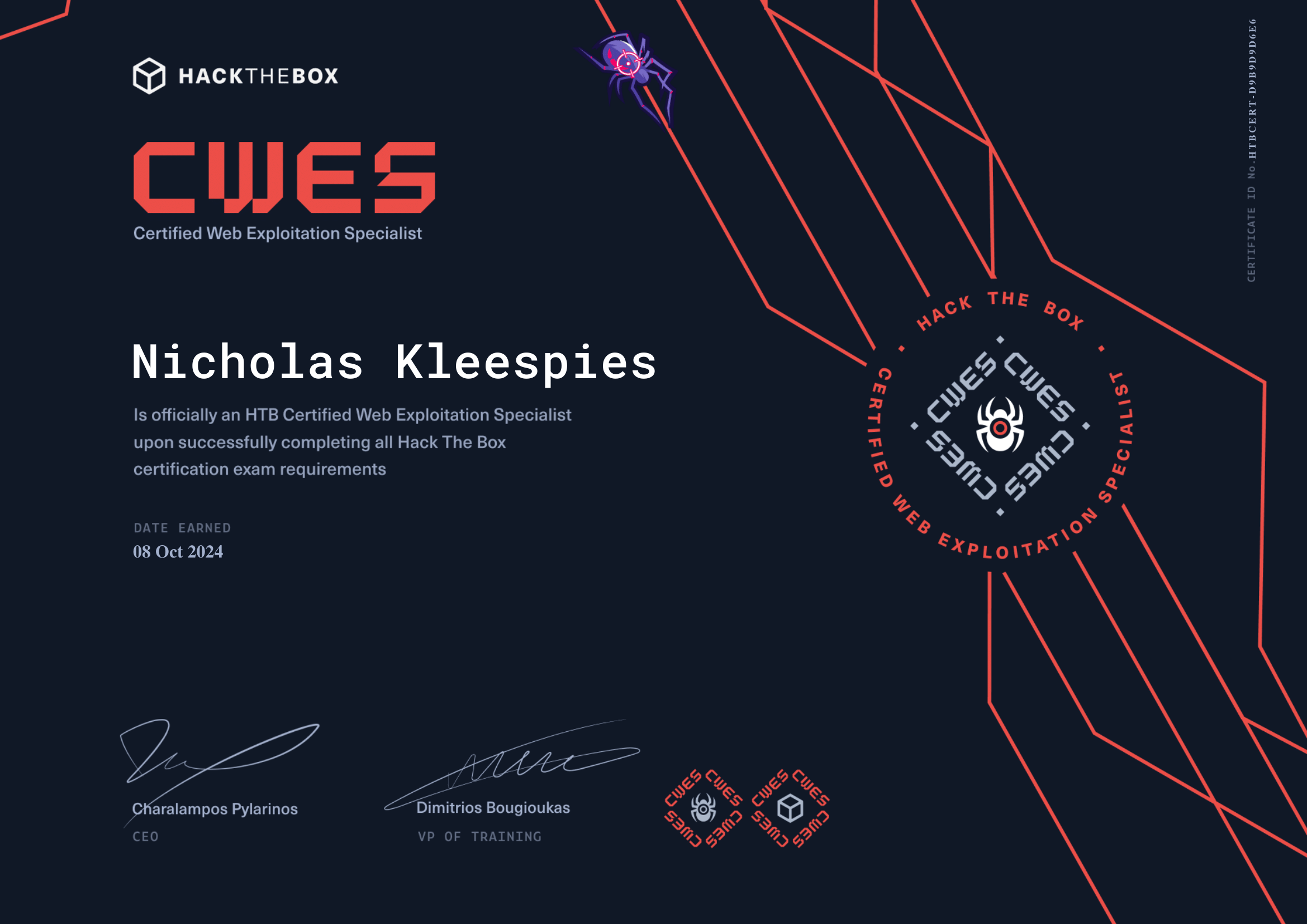 Hack The Box. (n.d.). Certified Web Exploitation Specialist (CWES). https://academy.hackthebox.com/preview/certifications/htb-certified-web-exploitation-specialist